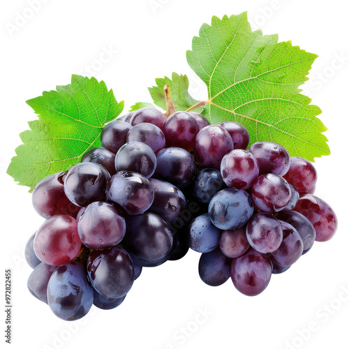 © Netroder, Fototapeta premium Fresh red grapes with green leaves isolated transparent background