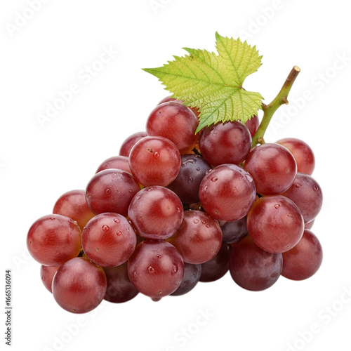 © Runa, Fototapeta premium Fresh red grapes with leaf isolated on transparent background