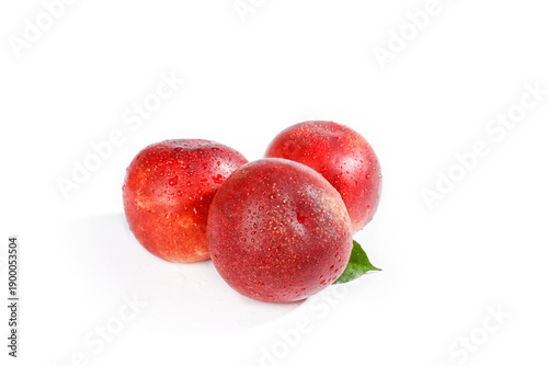 © TrieuBaoTran, Obraz premium Fresh Red Nectarines with Water Drops on White Background - Imported Stone Fruit from Chile Australia