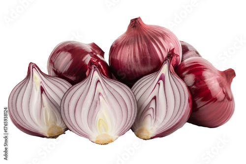 © ClearCraft, Obraz premium Fresh red onions with outer skin intact, Organic purple onions arranged together