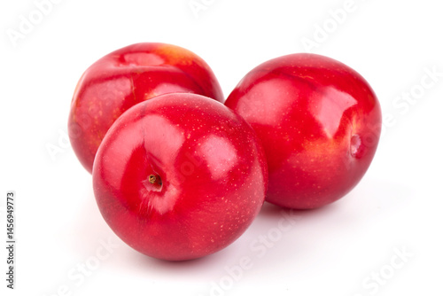 © GSDesign, Obraz premium Fresh Red Plums, isolated on white background.
