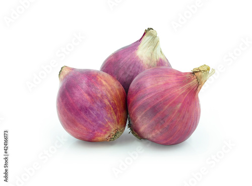 Obraz premium Fresh red whole onions isolated on white background. with clipping path.