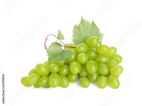 Obraz premium Fresh ripe grapes and leaves isolated on white