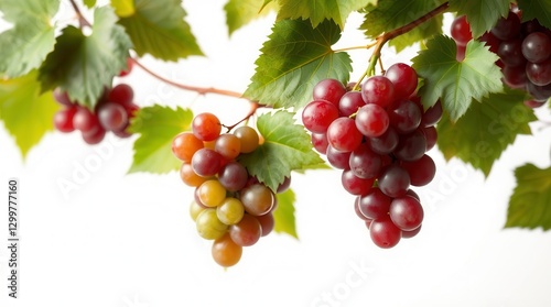 © AR Design, Obraz premium Fresh Ripe Grapes Hanging on Vine with Green Leaves