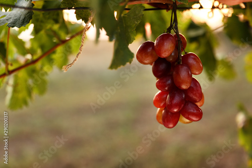 © New Africa, Fototapeta premium Fresh ripe juicy grapes growing in vineyard