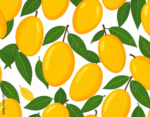 © Halimatus, Obraz premium Fresh Ripe Mangoes Pattern