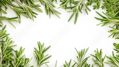 Naklejka premium Fresh Rosemary and Herbs Frame White Background