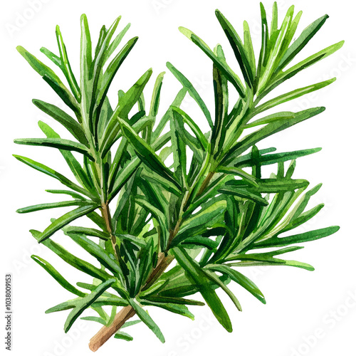 Fototapeta premium Fresh rosemary herb, vibrant green leaves, isolated on white background.