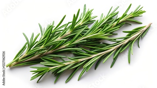 Fototapeta premium Fresh rosemary leaves arranged artfully on a neutral white background,...