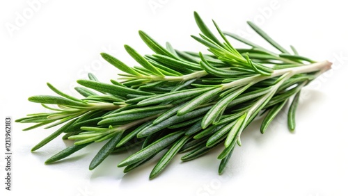 Fototapeta premium Fresh rosemary leaves isolated on a white background with a subtle texture, showcasing its aromatic properties and versatility in cooking , herbal spices, rosemary leaf