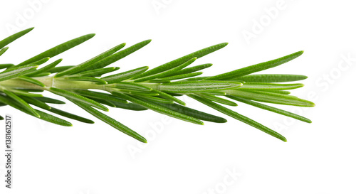 Fototapeta premium Fresh Rosemary Sprig Close-Up on White Background for Culinary Use