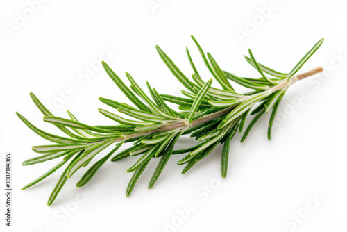 Fototapeta premium Fresh rosemary sprig on white background, ideal for culinary, herbal, or decorative purposes in various designs.