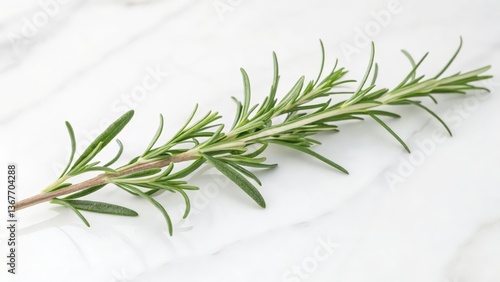 © Haseeb, Fototapeta premium Fresh Rosemary Sprig with Delicate Flowers on White Background