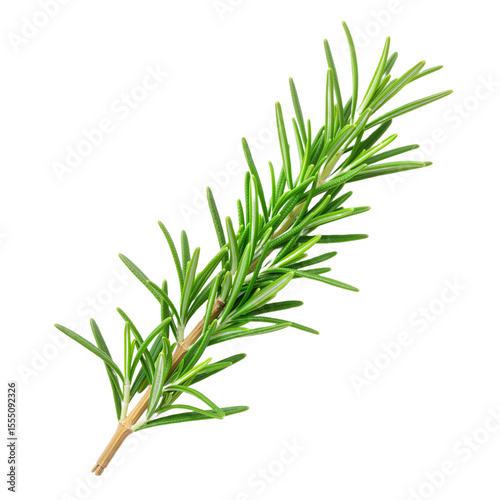 Naklejka premium Fresh Rosemary Sprig with Vibrant Green Leaves Against White Background