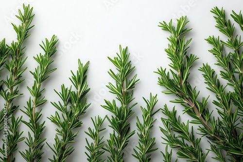 © Vesna, Obraz premium fresh rosemary sprigs isolated against a pure white background highlighting the aromatic herbs vibrant green color and texture for culinary or botanical presentations