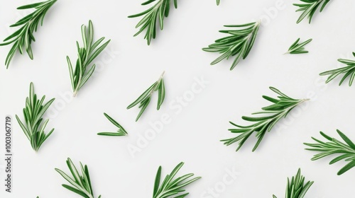 Fototapeta premium Fresh Rosemary Sprigs on White Background Generative AI
