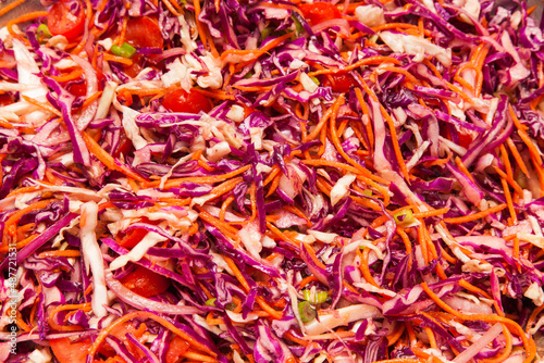 © Сергей Жмурчак, Naklejka premium Fresh salad with cabbage, carrots and onions.