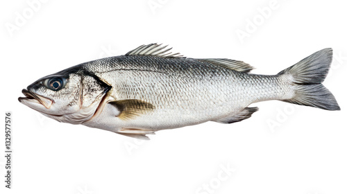 Fototapeta premium Fresh sea bass fish on white background, ideal for culinary presentations and...