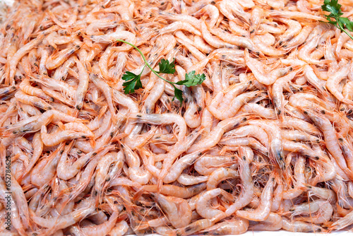 © Azulblue, Fototapeta premium Fresh seafood delights at a bustling traditional market.