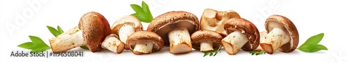 © ANZ studio, Fototapeta premium Fresh shiitake mushrooms with parsley leaves, isolated on white background.