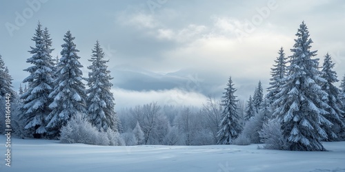 © vxnaghiyev, Obraz premium Fresh snow covering a pine forest, seasonal change and erosion risk