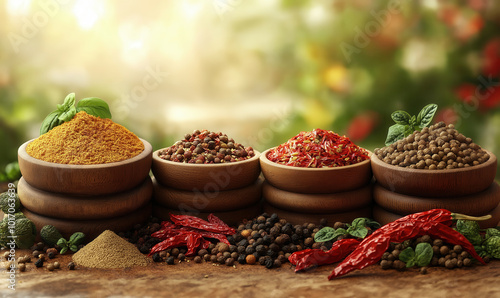 © Andreas, Fototapeta premium Fresh spices and herbs for food on table.