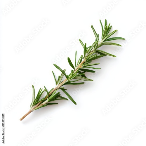 © NATTAKORN, Fototapeta premium Fresh Sprig of Aromatic Rosemary with Slender Leaves on White Background