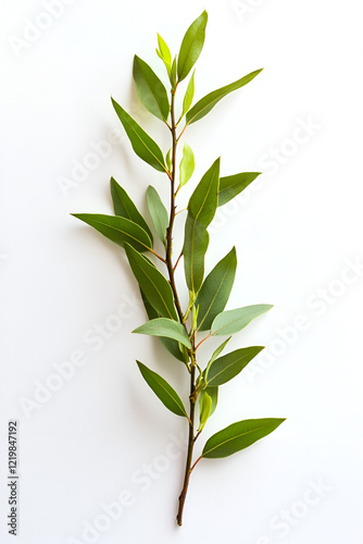 Naklejka premium Fresh sprig of green leaves against a white background. Perfect for natural, herbal, or botanical designs.