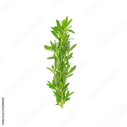 © Gebevihu, Naklejka premium Fresh Sprig of Summer Savory Herb Isolated on Black Background