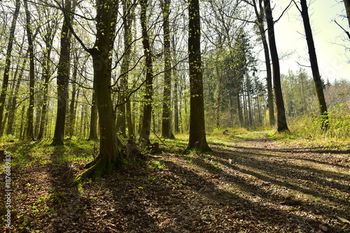 Fototapeta premium Fresh spring forest foliage morning landscape nature