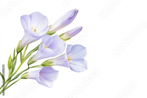 © volga, Fototapeta premium Fresh spring freesia flowers on white background