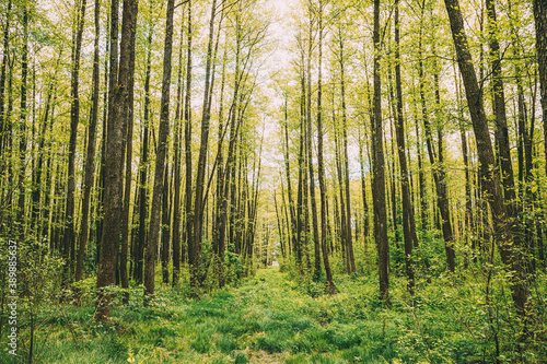 Obraz premium Fresh Spring Green Leaves Lush In Deciduous Forest. European Nature