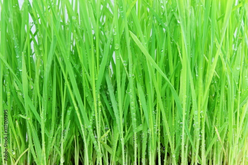 © gv image, Naklejka premium fresh sprouted wheat grass with water drops closeup