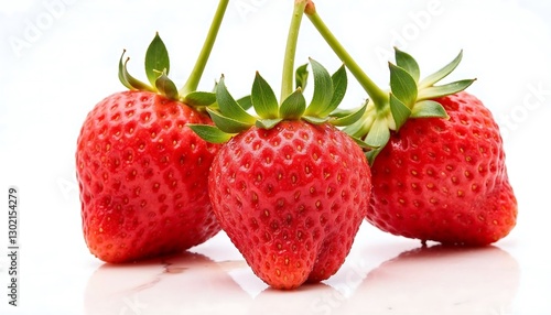 © Musa Media, Obraz premium Fresh strawberries close-up on white surface, vibrant red color and juicy texture appealing to consumers