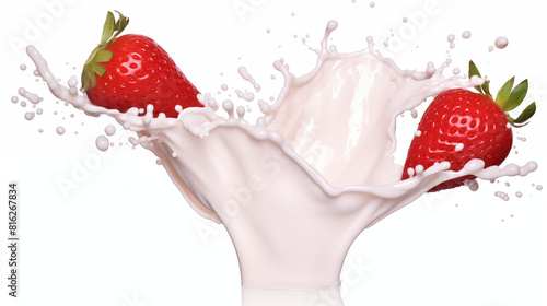 Obraz premium Fresh strawberries splashing into creamy milk – high-speed photography