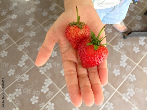 Obraz premium fresh strawberry in hand.