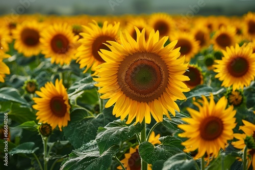 Fototapeta premium fresh Sunflower field wallpaper background