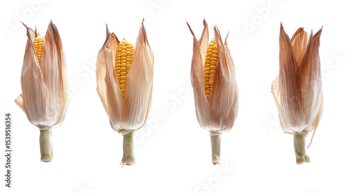 © Wicha1, Obraz premium Fresh sweet corn cobs with husks Transparent background, PNG