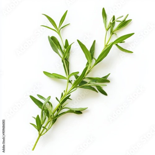 © AlexandraRooss, Fototapeta premium Fresh Tarragon Branch on White Background for Food or Cosmetic Design Generative AI