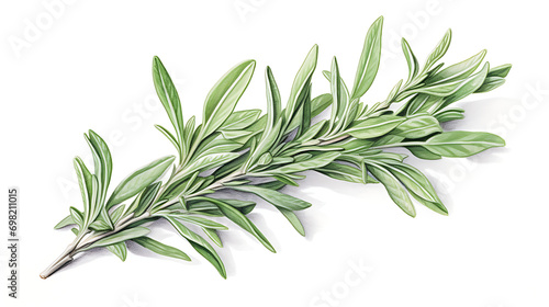 Fototapeta premium Fresh Tarragon Sprig, White Background