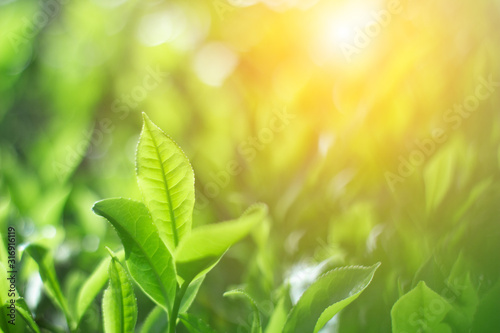 Fototapeta premium Fresh tea bud and leaves.Tea plantations.selective focus
