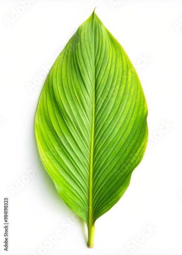 © onehourhappiness, Fototapeta premium Fresh Turmeric Leaf Isolated on White Background - Herbal Ingredient for Natural Remedies and Spices