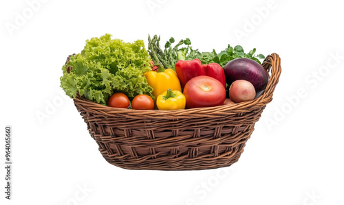 Fototapeta premium Fresh vegetables and fruits in a wicker basket transparent background image