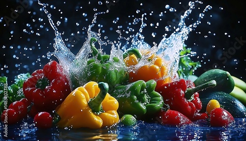 © 娜 赵, Fototapeta premium Fresh Vegetables with Water Splash