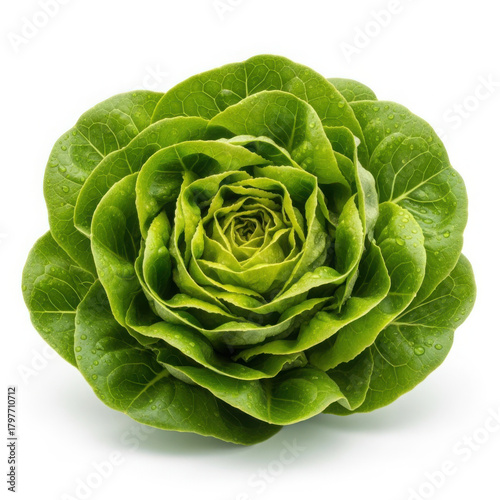 Fototapeta premium Fresh vibrant green butter lettuce head isolated on white healthy food...