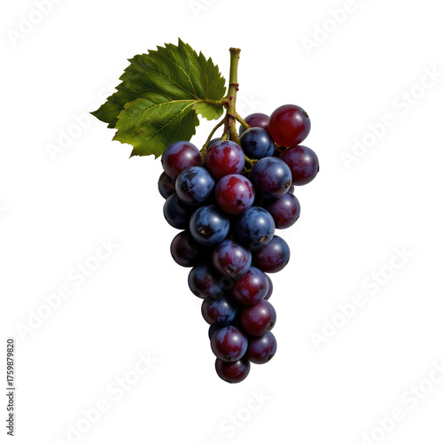 © ColorfulFlowerStudio, Fototapeta premium Fresh Vine-Ripened Grapes with Green Leaves on a White Background