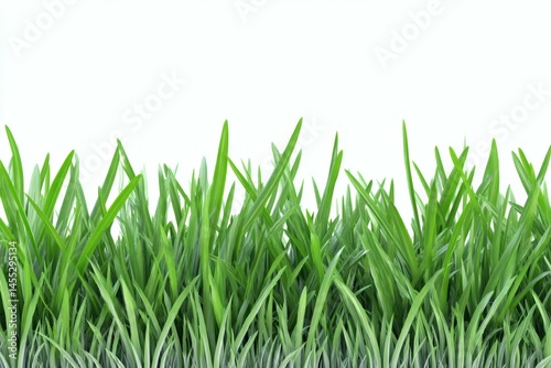 Fototapeta premium Fresh Vivid Green Grass Blades Isolated on Clear White Background Lush Lawn