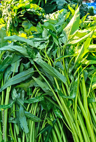 Obraz premium Fresh Water Spinach Vegetable Close-Up