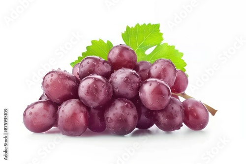 © Hitam Putih, Fototapeta premium Fresh Wet Red Grapes with Leaves