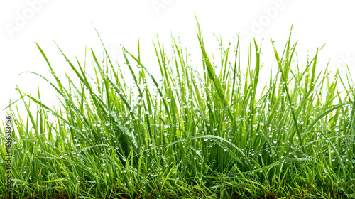© 3D Demo Stock, Fototapeta premium fresh wet spring grass with dew isolated on white background, HD realistic